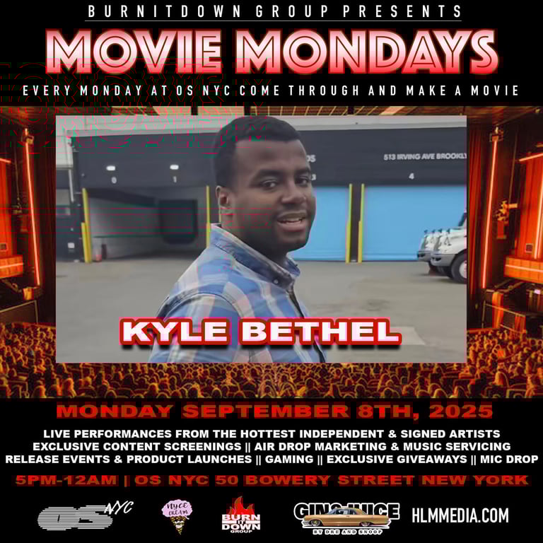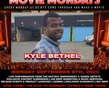 Movie Mondays is a weekly event series blending live entertainment, networking, and brand activations in the heart of New York City. Hosted at OS NYC, the event opens with film screenings and transitions into high energy performances from rising artists, including Kyle Bethel, along with special guests. Designed as both a platform for talent and a space for industry connection, Movie Mondays has quickly become the go to start of the week turning Mondays into a stage for music, media, and unforgettable moments
